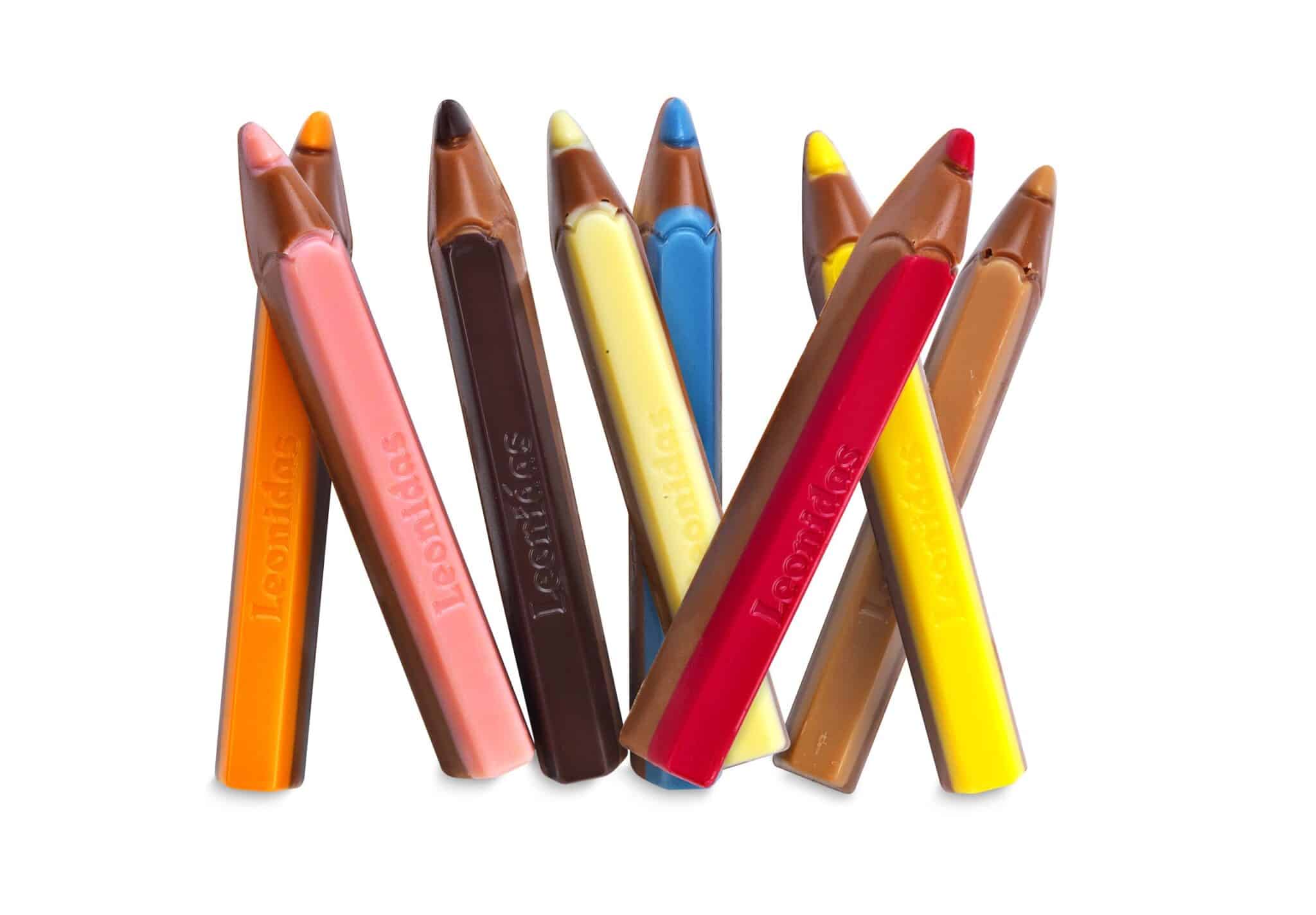 Ces délicieux crayons en chocolat au lait 100% pur beurre de cacao sont couverts d’une fine décoration colorée. Ils sont vendus dans une boite dédiée de 8 crayons.