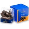Encore plus de plaisir avec ce cube garni de succulentes lanières d’écorces d’oranges confites enrobées de chocolat noir Leonidas.